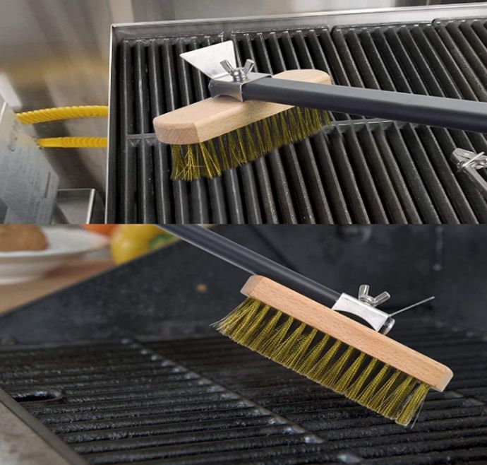 Spazzola per forno in filo di rame, spazzola per la pulizia con manico in alluminio resistente, spazzola per forno per pizza